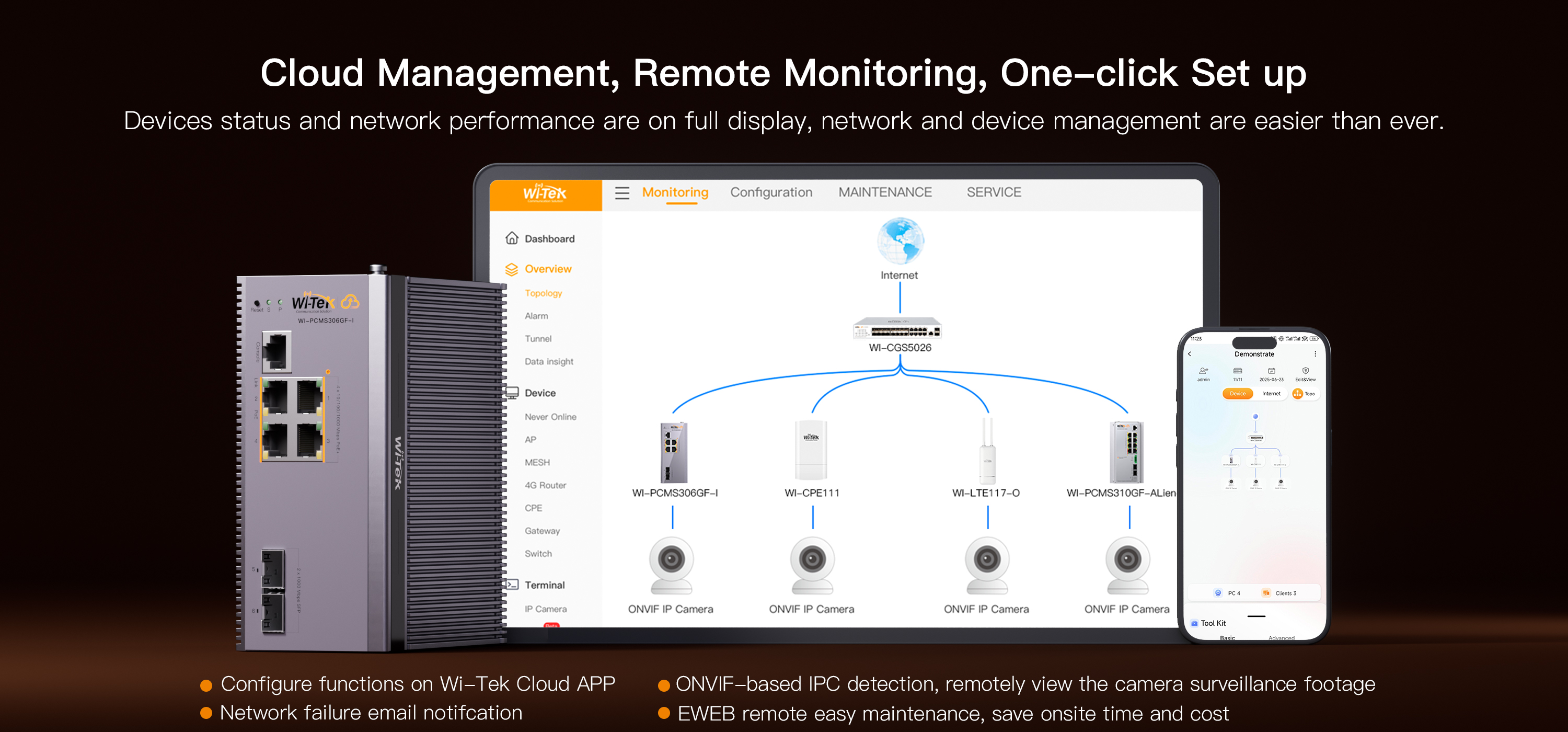 ● Easily remote manage your ONVIF camera via the Wi-Tek Cloud platform/ mobile APP
