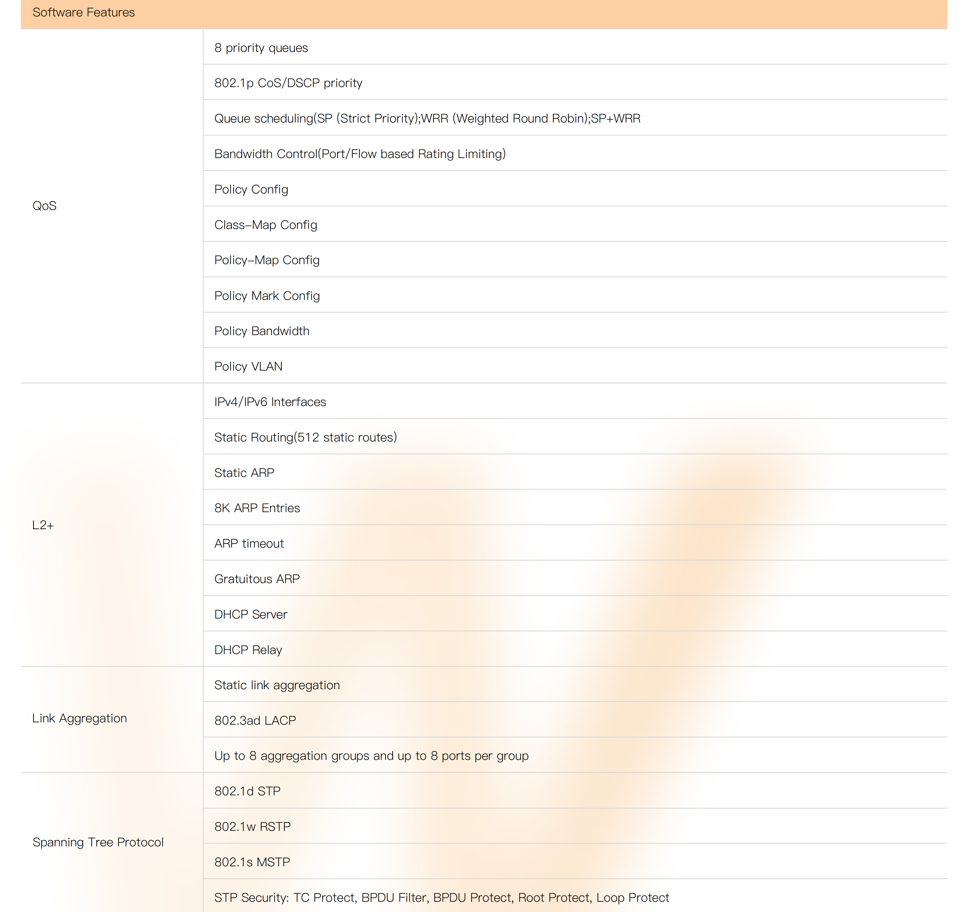 ● Abundant L2+ Managed Features: ERPS, QoS, DHCP, Static Routing