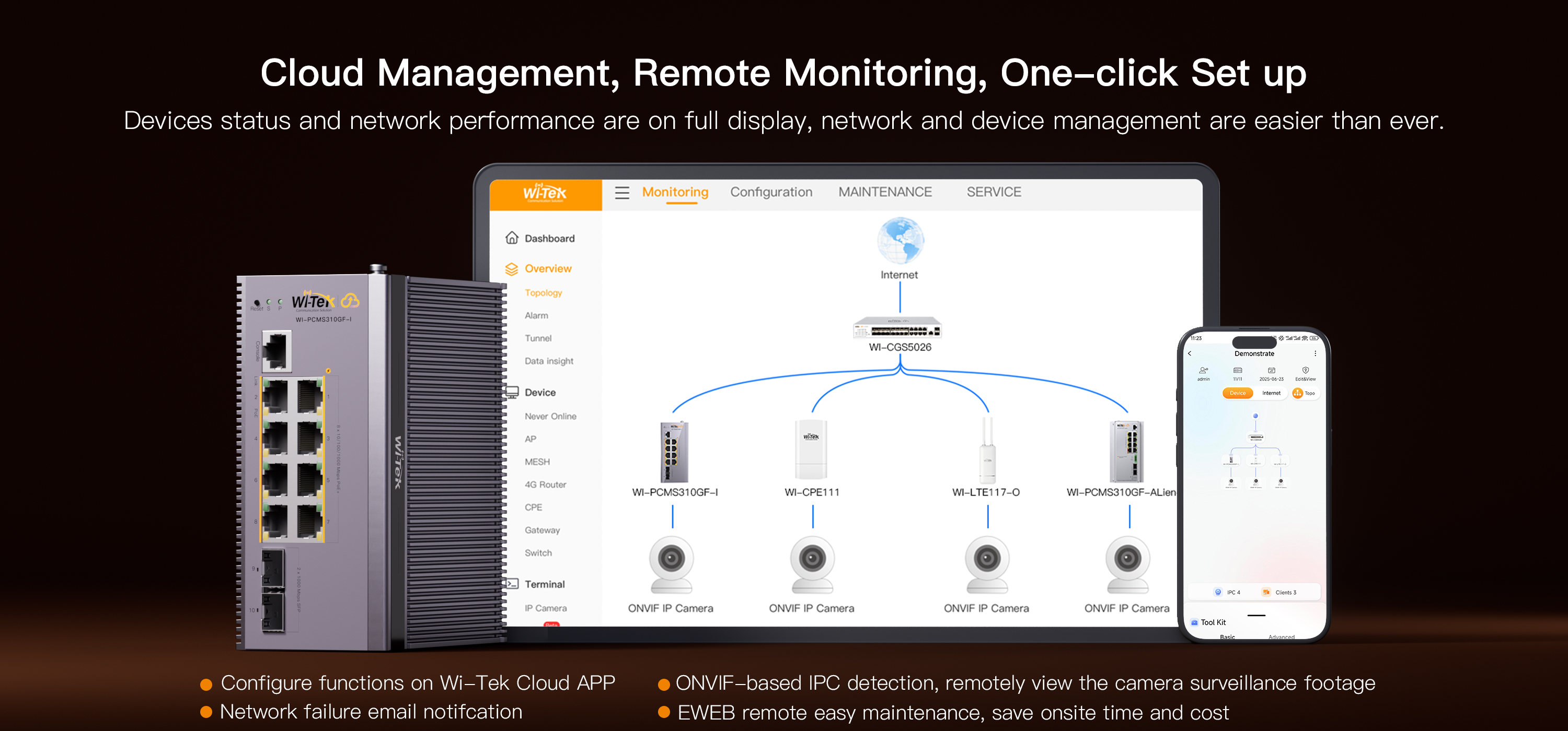 ● Easily remote manage your ONVIF camera via the Wi-Tek Cloud platform/ mobile APP