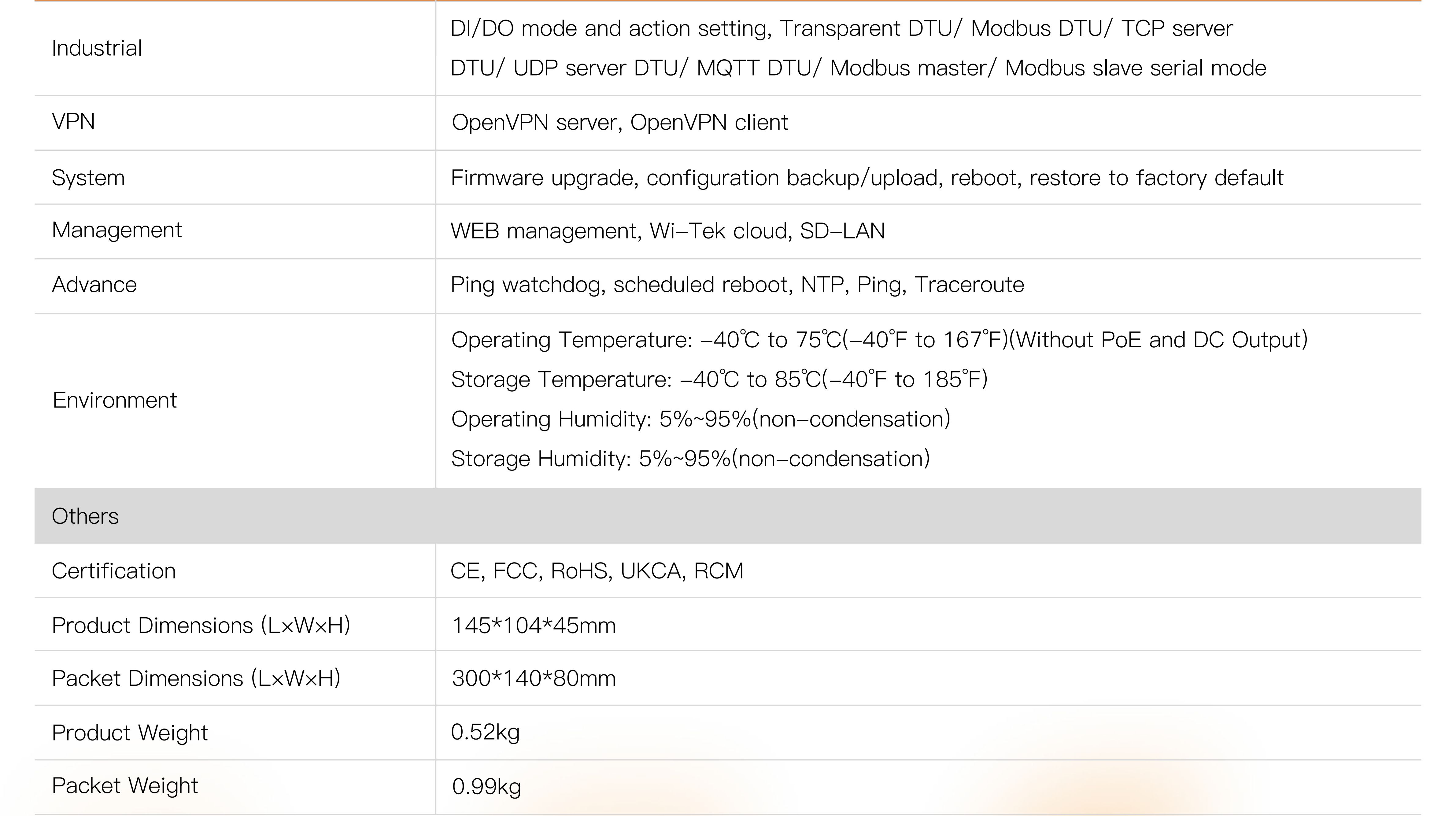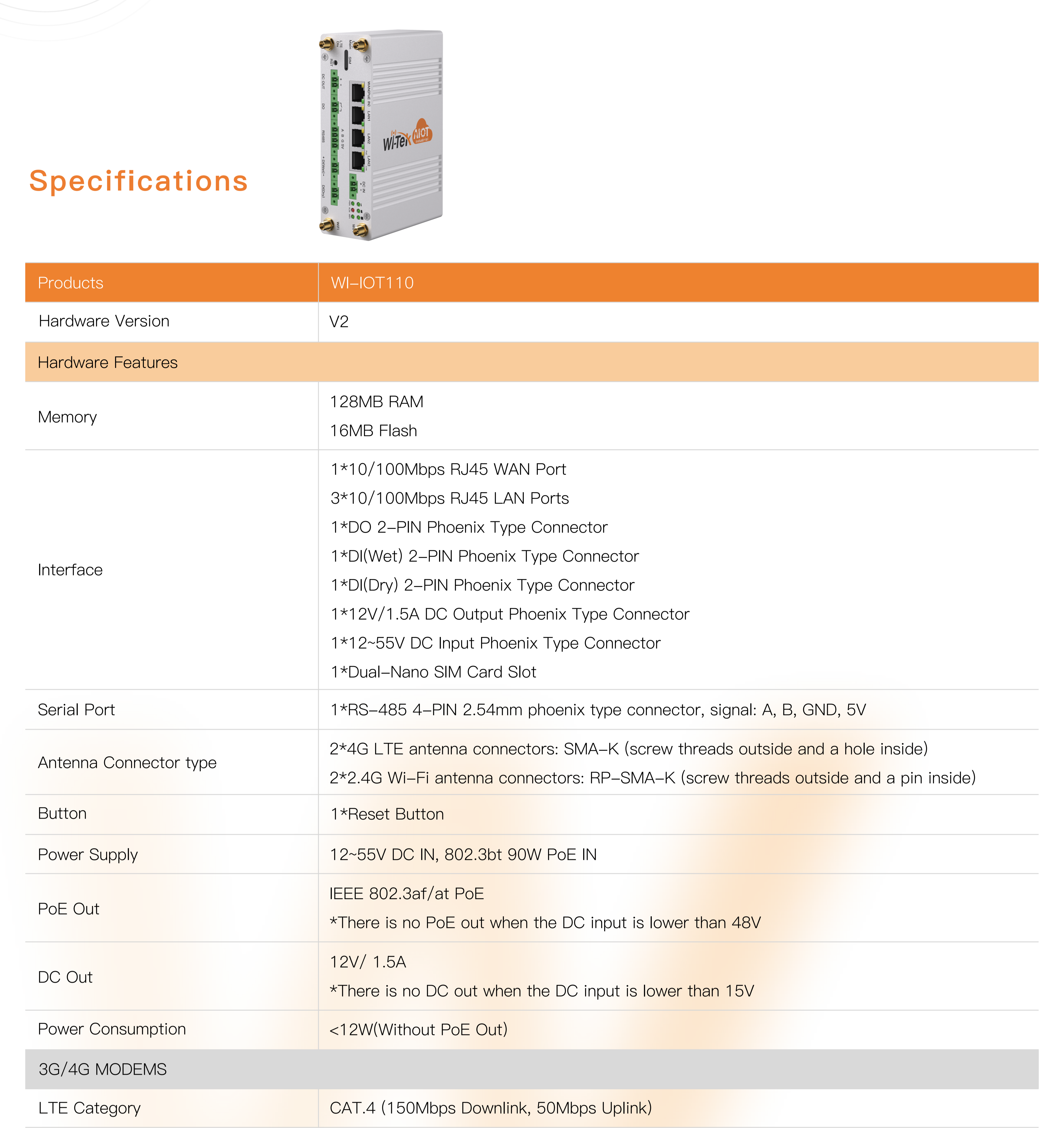 ● Flexible IoT interfaces ( 1*DI(Dry) + 1*DI(Wet) + 1*DO ).