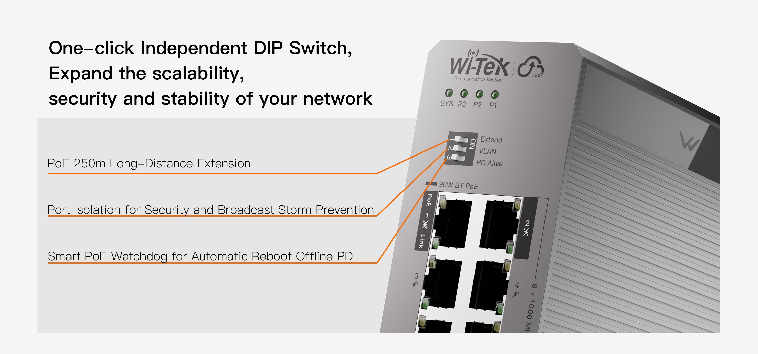 ● 8*10/100/1000Mbps PoE++ ports, 1*10/100/1000Mbps RJ45 Uplink port and 1*1000Mbps SFP slot