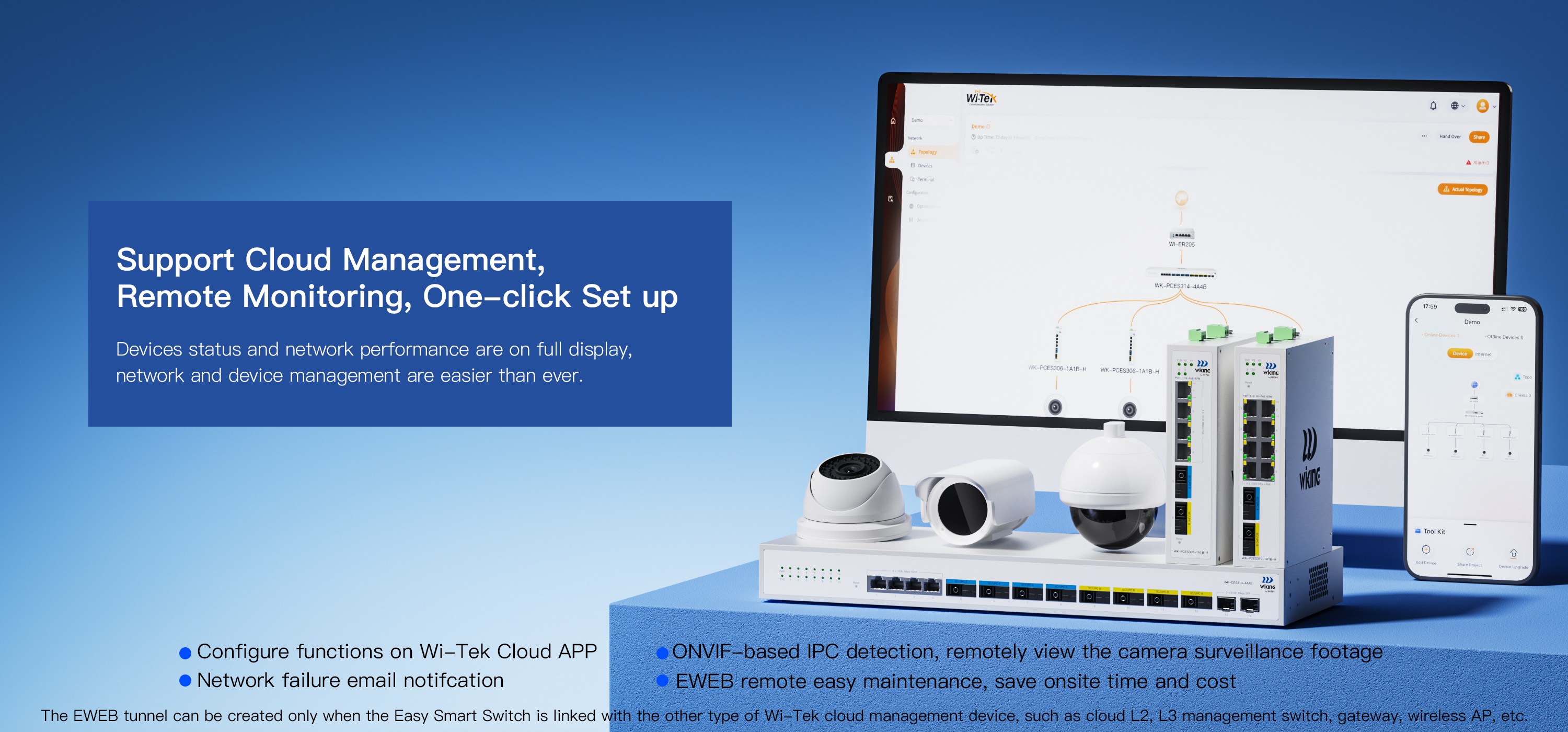 ● Support Wi-Tek Cloud management, mobile APP remote maintenance
