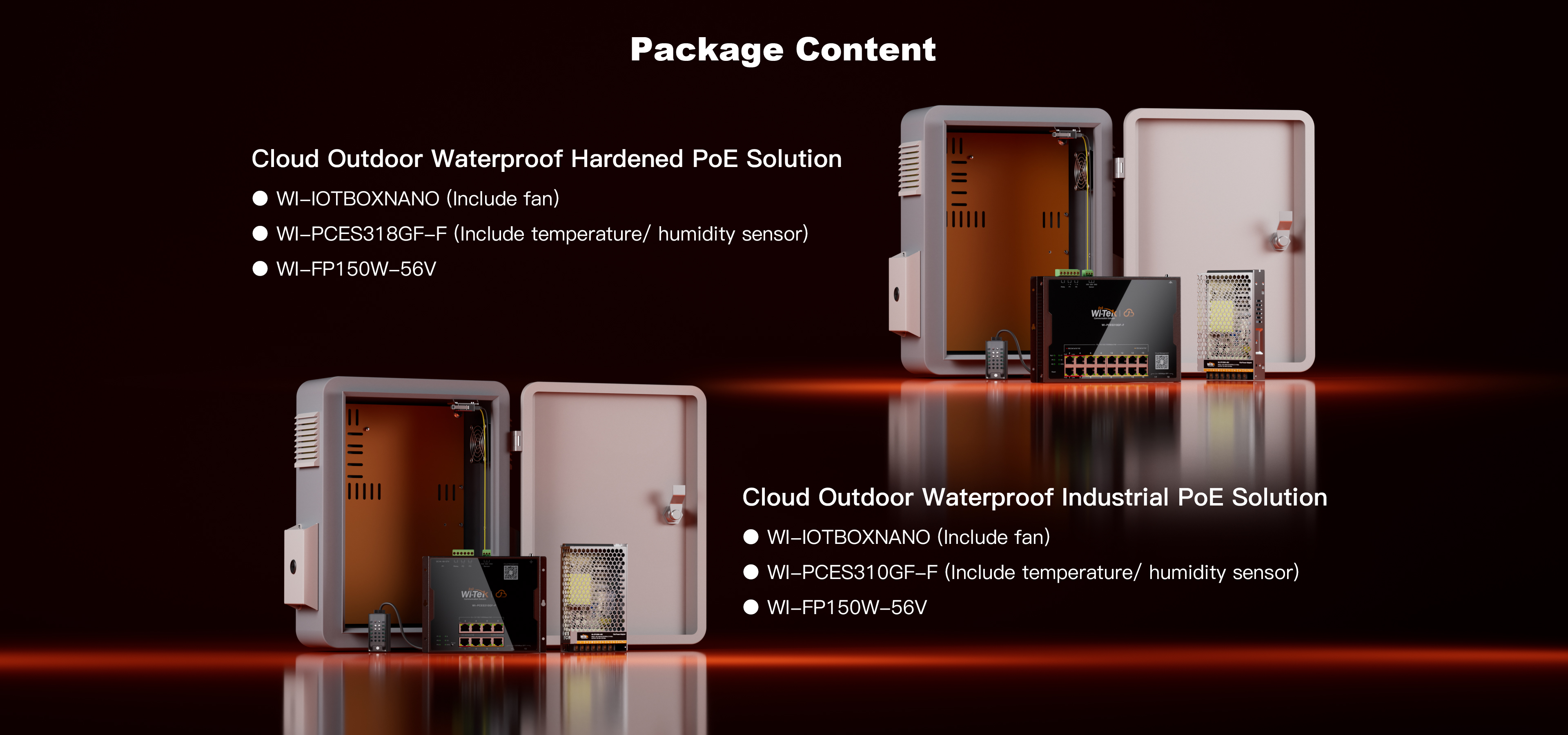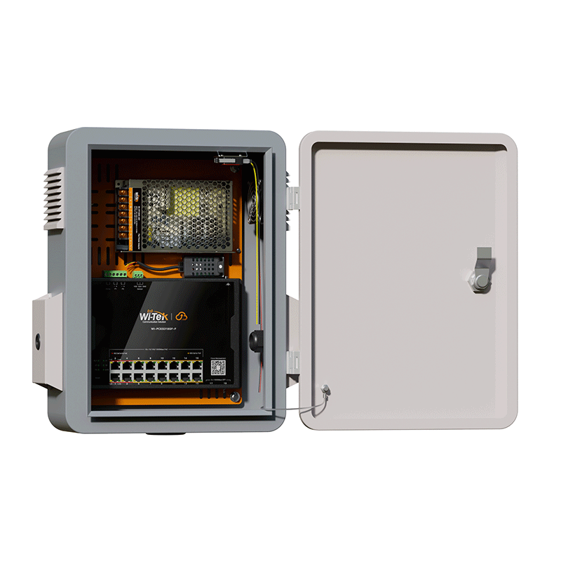 ● Cloud Outdoor Waterproof Hardened PoE Solution: WI-IOTBOXNANO+ WI-PCES318GF-F+ WI-FP150W-56V(include temperature/ humidity sensor and fan)
