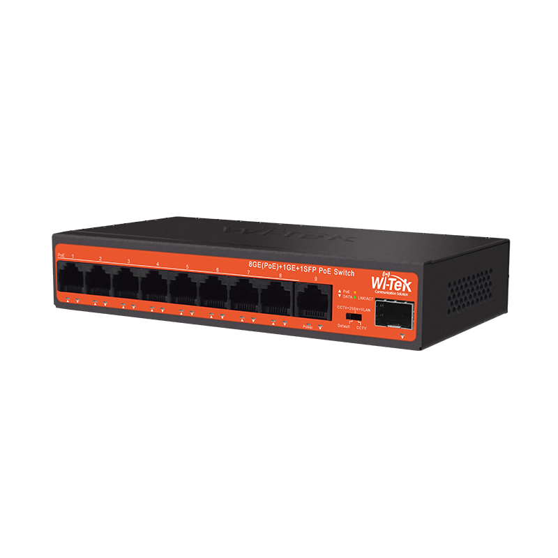 ● 8 Gigabit PoE ports, 1 Gigabit RJ45port and 1 Gigabit SFP Slot